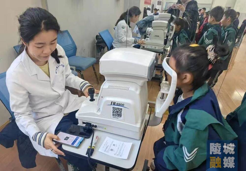 陵城融媒3月24日讯 近日,陵城区2025年全区中小学生近视防控视力筛查活动走进临齐街道万华小学,为学生们进行视力筛查和眼健康科普宣传。